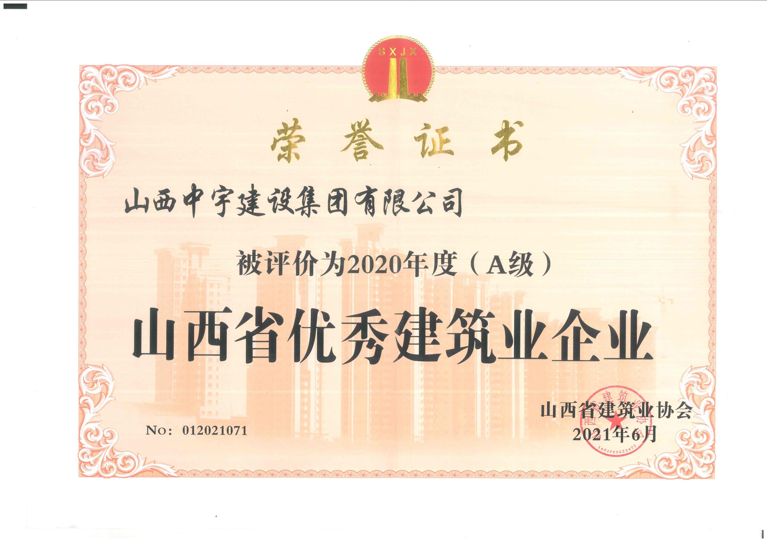 • 2020年度山西省優(yōu)秀建筑業(yè)企業(yè)">