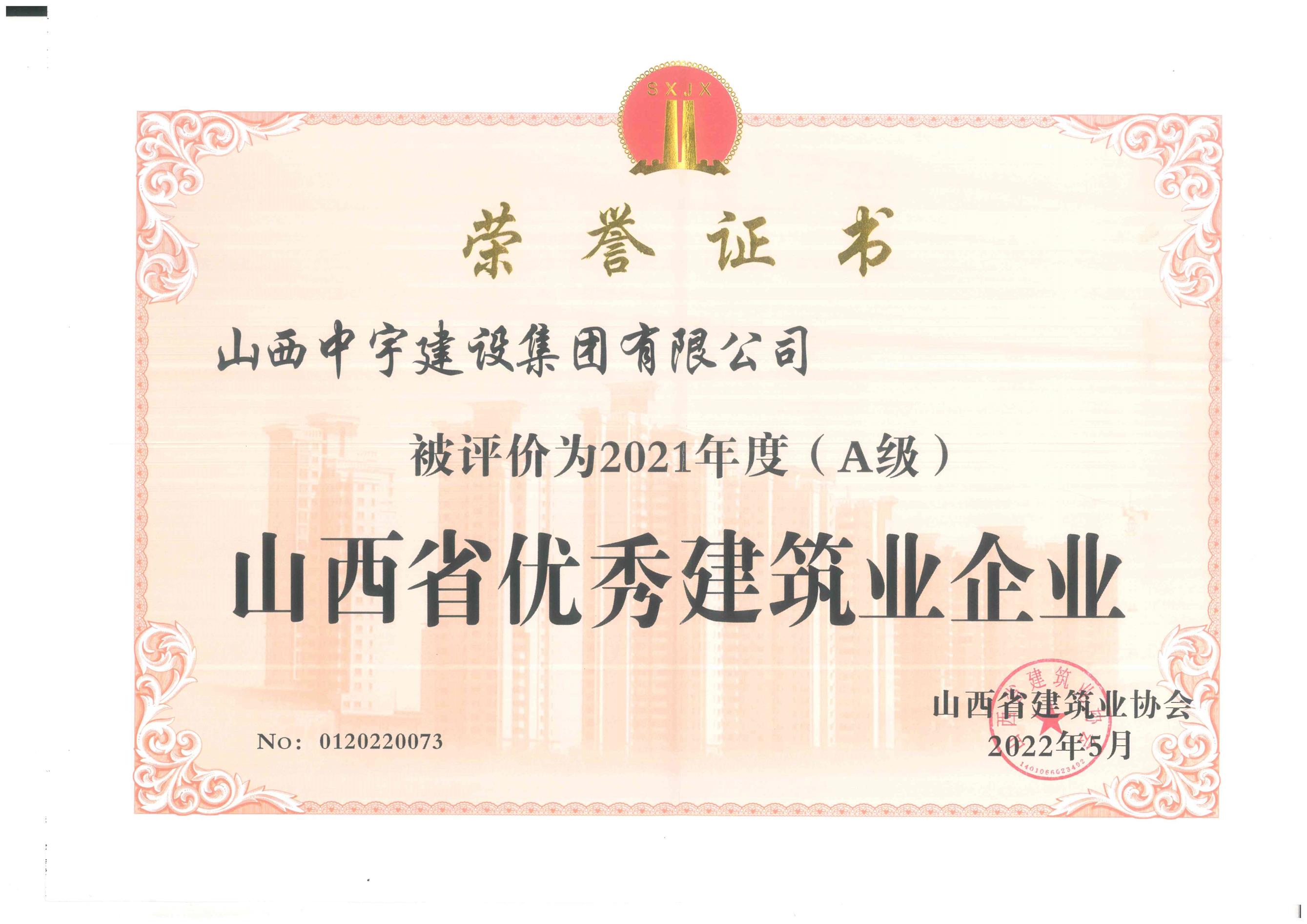 • 2021年度山西省優(yōu)秀建筑業(yè)企業(yè)">